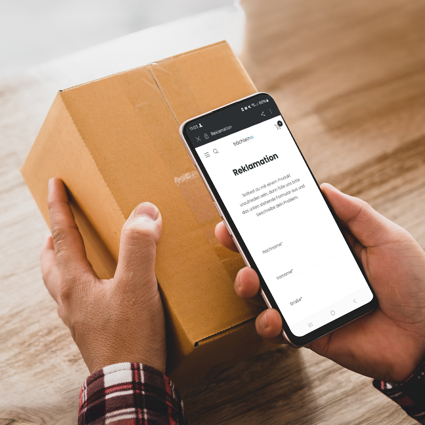 Öffne unser Reklamationsformular und fülle alle Felder aus.