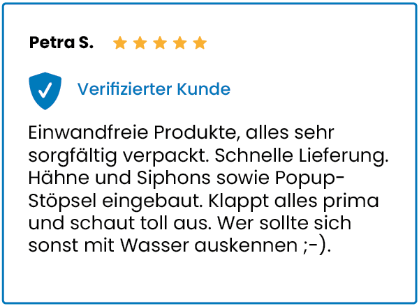 Das Einbauen von Sanitärprodukten ist viel einfacher, als du denkst. Mit der richtigen Anleitung und unserem professionellen Kunden Support bist du dafür bestens vorbereitet. Zu jedem Produkt erhältst du eine detaillierte Anleitung, die deiner Bestellung beiliegt.
